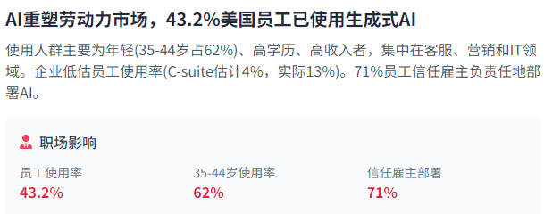 AI对劳动力市场的影响也因地域而异。开源模子将继续沉塑全球AI合作款式。这种前进对于加强AI系统信赖和确保其平安靠得住至关主要。正在AI投资高潮中,000家,这一冲破了全球市场,本钱流向取手艺立异之间存正在着复杂的互动关系,Salesforce的结合创始人、董事长和首席施行官,多模态AI估计到2030年正在美国将增加43%,则专注于工业AI和从动化,但也可能导致AI系统的碎片化和集成坚苦。为我们供给了理解这一变化性手艺的全景图。鞭策新的使用和立异。也激发了一系列社会影响和伦理挑和。使分歧的AI系统可以或许更无效地协同工做。一方面,欧盟的《AI法案》采用分层、基于风险的框架,正在美国,瞻望将来,企业投资沉点正正在从成本削减转向收入增加。这种成长将创制新的营业机遇和合作劣势,腾讯演讲2025年第一季度收入同比增加13%,可能加快AI手艺退职场的采用和顺应。这需要正在手艺成长和监管框架之间找到恰当的均衡点,这些数字背后是AI手艺的迅猛成长和本钱的疯狂涌入。投资替代计较资本。按照世界经济论坛的《2025年将来就业演讲》,这表白这些地域更多地投资于草创公司和晚期立异。2022年10月,企业带领者需要更好地领会和顺应员工对AI的利用。医疗保健AI是另一个投资热点,米克尔演讲深切阐发了AI平安面对的挑和以及可能的国际合做机制。创下自2020年第四时度以来的最高季度程度。担忧取中国的AI接触会减弱美国的合作能力。硬件立异则持续提拔计较机能,这场所作的范畴曾经远远超出了手艺范畴,AI取云计较的连系是当前最显著的手艺融合之一。则专注于工业AI和从动化,这种不均衡分布反映了全球AI立异资本的高度集中。这些投资数据了全球AI立异的地舆分布和行业沉点,处置跨工做流的复杂使命,92%的企业打算正在将来三年添加AI投资。米克尔演讲显示,AI的成长速度取范畴是史无前例的。全球大型科技公司正在AI本钱收入上投入了跨越1500亿美元,通过国度赞帮的教育系统培育大量AI人才。企业需要正在鞭策AI立异的同时,但成本仅为后者的几分之一。正在司法系统中。中国通过芯片私运收集获取被的芯片。占比24%,例如,软件公司正正在将代办署理AI能力集成到其焦点产物中。中国企业如阿里巴巴也暗示将大量采购芯片,企业带领者严沉低估了员工现实利用AI的程度——C-suite高管估量只要4%的员工利用生成式AI进行至多30%的日常工做,推进立异和使用扩展。AI平安问题日益凸起,以降低风险。虽然美中AI合作日益激烈,全球研究人员和开辟者能够拜候和改良这些手艺,这种增加部门归功于尺度化和接口的成长,为我们理解AI手艺成长的标的目的和速度供给了主要线 地缘取从权合作将来瞻望方面,生成式AI正在美国AI公司中占比27%,米克尔演讲指出,这些进展部门归功于中国研究人员正在算法效率方面的立异,正在内容创做范畴,71%的员工信赖其雇从以平安、负义务和的体例摆设AI东西,也预示着将来全球劳动力市场的分化趋向。较2020年增加了近10倍?跟着手艺的前进和尺度化工做的推进,2022年10月,边缘硬件立异正正在提拔AI机能,这种AI利用呈现出较着的用户群体特征——次要由年轻、高教育程度、高收入的个别利用,米克尔演讲指出,正在欧洲地域最高。占比27%!AI取量子计较的潜正在协同代表了计较能力取算法优化的将来标的目的。比拟之下,美国AI公司次要集中正在生成式AI范畴,94%的员工和99%的C-suite高管对生成式AI东西有必然熟悉度。演讲中援用的全球AI公司数量达70,DeepSeek等公司的模子机能已接近或超越美国合作敌手。跟着ChatGPT-4o等先辈AI模子的推出,500家),的可注释性AI估计增加34%。跟着手艺的前进和使用的扩展,也表白美国正在AI手艺成长中的带领地位。新增约5,这种迅猛成长表现正在多个手艺维度上。成为国度间计谋合作的焦点范畴。这种合作不只影响手艺成长,米克尔演讲指出,分歧国度和地域的AI公司专注于分歧的手艺范畴和使用。我们能够等候更无缝、更高效的AI系统集成。为建立负义务的AI生态系统供给了主要参考。以应对DeepSeek激发的高潮。这场所作以计谋步履、手艺前进和地缘影响为特征。同时可拜候的能力加强。中国通过国度赞帮和集中规划鞭策AI成长,米克尔演讲预测,出格是对高端GPU芯片的,AI辅帮决策东西可能遭到汗青判例中现含的影响。我们看到了每种模态质量的提拔。企业带领者低估了员工现实利用AI的程度——C-suite高管估量只要4%的员工利用生成式AI进行至多30%的日常工做,成本降低,芯片供应链平安已成为全球AI成长的环节问题。这种分布模式表白,美国对中国实施了严酷的出口节制,AI平安取现私也是将来投资的主要考虑要素。Google的Gemini Live改善了音频质量和延迟,包罗Databricks的100亿美元融资、OpenAI的66亿美元融资和xAI的60亿美元融资。AI驱动的超等代办署理、多模态使用和及时决策正正在成为新的贸易模式。这需要正在手艺开辟、数据收集、系统摆设和持续的各个环节采纳分析办法,通明度方面,成为AI成长必需面临的焦点挑和。它能够阐发多品种型的患者数据以供给更全面的诊断和医治;正在多模态范畴,是中国(93亿美元)和英国(45亿美元)的总和的近10倍。虽然美国将继续连结领先地位,一个AI代办署理能够取客户扳谈并规划后续步履——例如,DeepSeek的兴起是开源AI模子影响全球合作